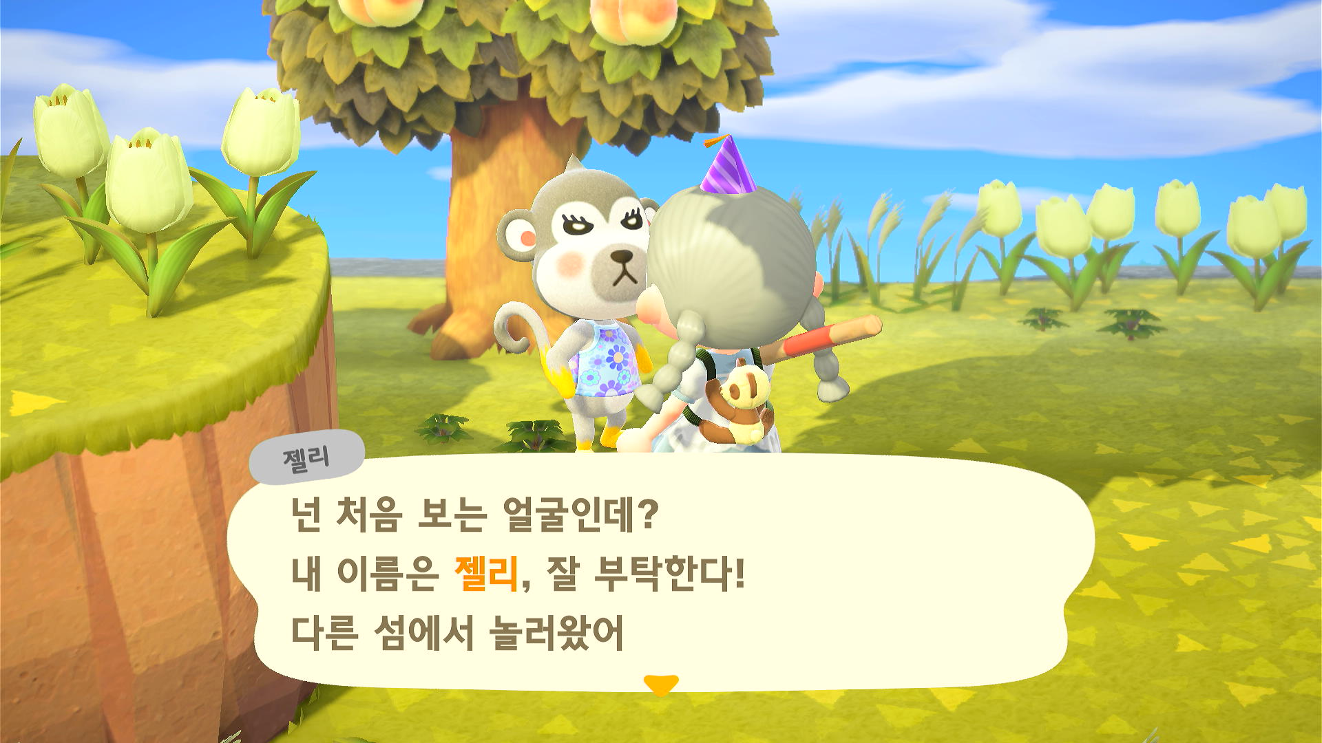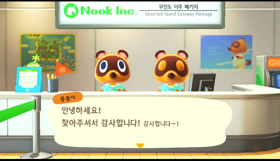 그래서 바로 캠핑장에 불러서 선물 세 개 바치고 섬 주민으루 데려왔다.